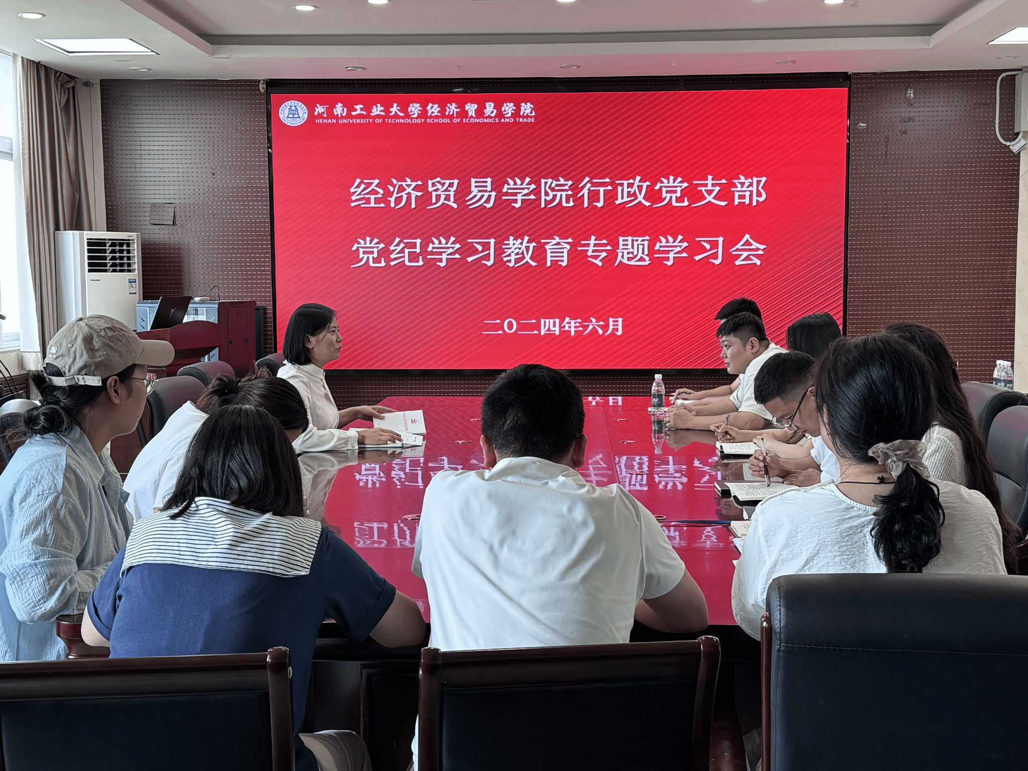 行政党支部在博识楼3501会议室召开了党纪学习教育暨迎七一主题党日活动。支部书记岳鹏珍主持会议,支部全体党员参加了此次学习。
