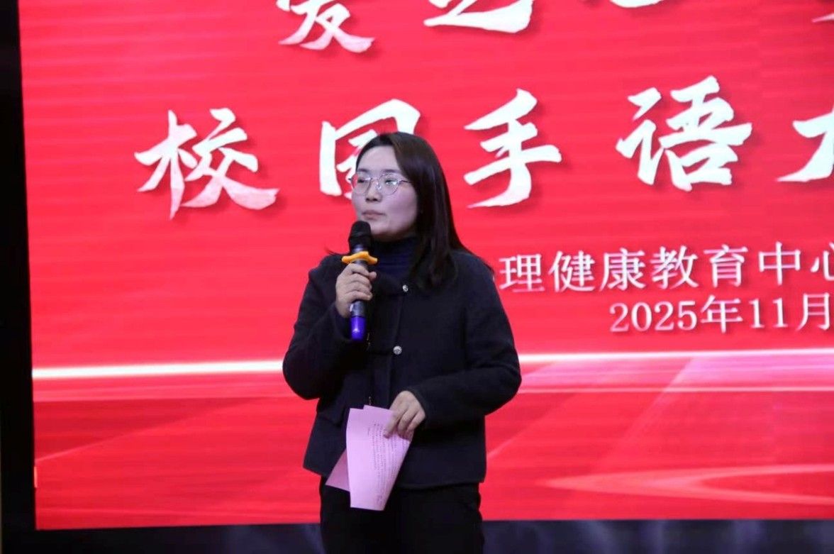 最后,李雅作总结发言。她对各支队伍的精彩表现给予高度评价,指出手语大赛不仅是技艺的比拼,更是一次心理健康教育的生动实践。在无声的表达中,同学们展现了倾听、理解与共情的能力,这正是心理健康教育所倡导的核心内涵。她特别强调,手语所传递的非言语力量,在心理沟通与团队协作中具有独特价值,并鼓励大家持续关注心理健康,以指尖的语言传递温暖、支持与希望。