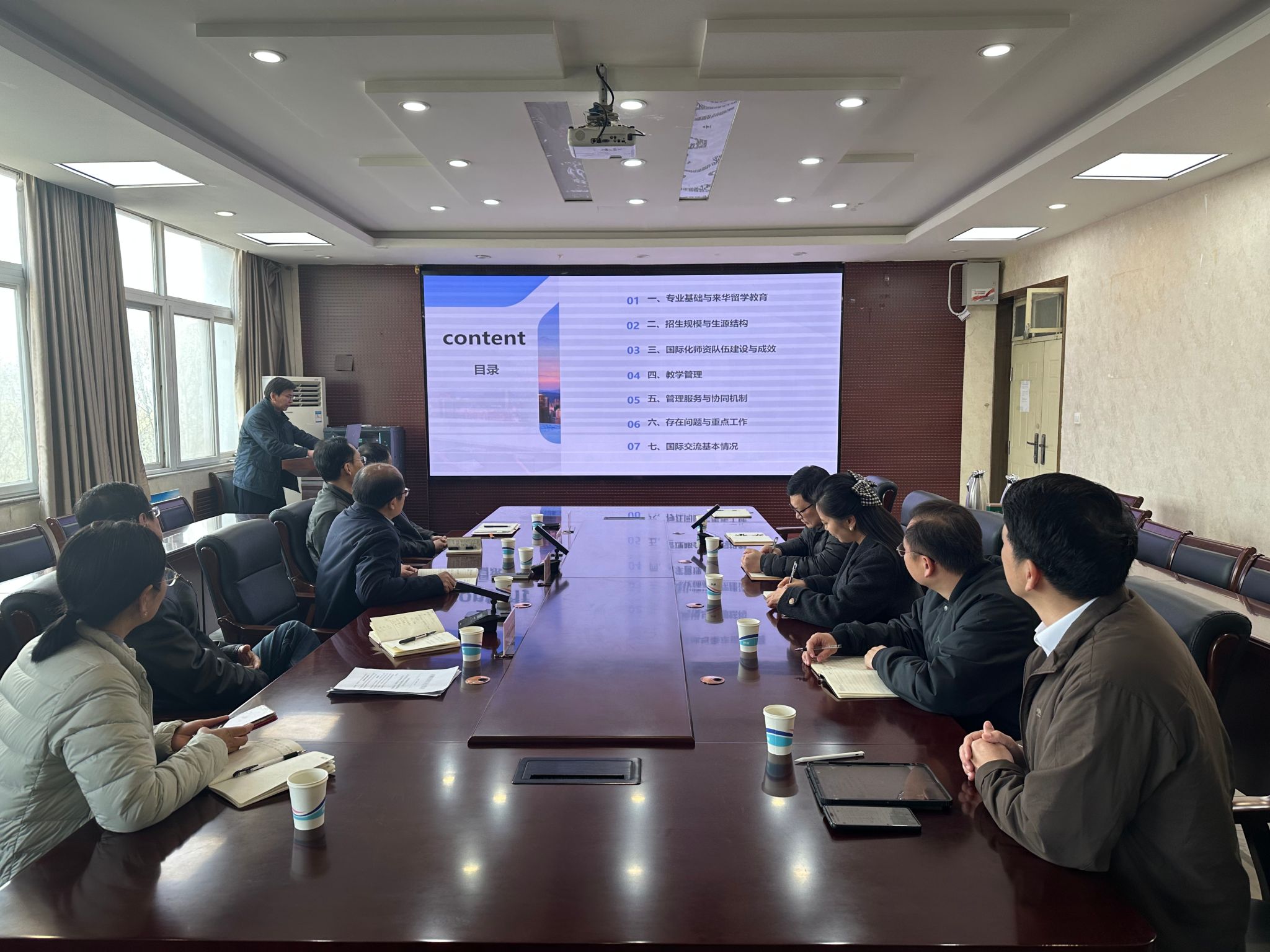 领导班子、留学生教师代表一起参加调研会议。