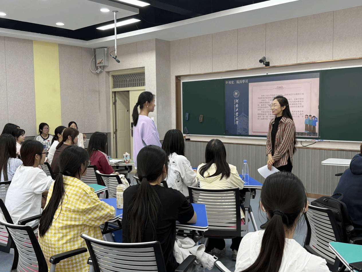 校史展开。张瑞玲带领同学们回望学校七十载实干兴校的发展征程,号召全体学员从厚重校史中凝聚奋进力量,脚踏实地、稳步前行,以自身优异成绩献礼学校七十周年华诞。解读校训内涵,领悟明德求是、拓新笃行的精神要义。