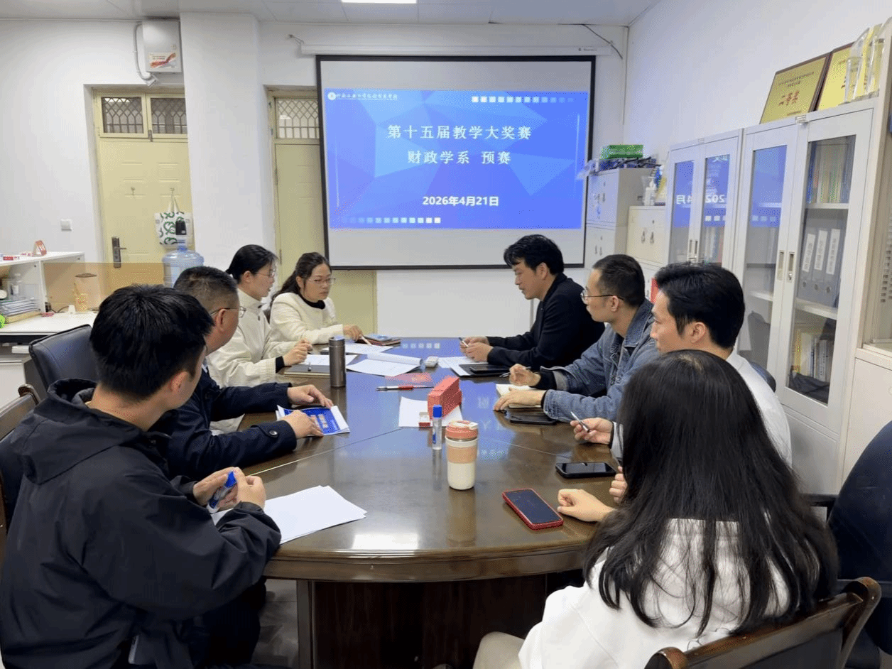 第十五届教学大奖赛实施方案》部署要求,不断提升教师教学水平,持续深化课堂教学改革,财政学系于4月21日下午在3515组织开展了第十五届教学大奖赛系室预赛专题教研活动。本次活动特别邀请了副院长程晓林、往届大赛一等奖获得者李小珍担任评委。会议由财政学系主任潘美薇主持。