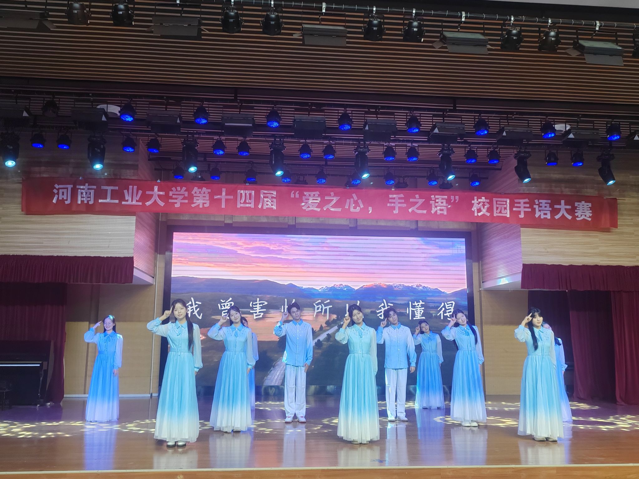 经过初赛和复赛的层层选拔,12支队伍进入决赛。赛前,王迪进行致辞,他对顺利进入决赛的队伍表示祝贺,对台前幕后支持此次比赛的全体工作人员表示感谢,希望同学们通过手语促进心理健康,传递积极阳光的正能量,并预祝本次比赛圆满成功。